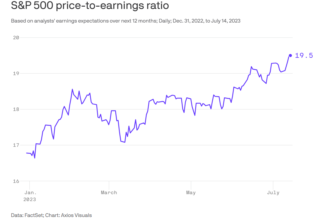 So far in ’23, multiple expansion has given stocks a significant boost. According to FactSet, S&P 500 started the year at 16.8 times its projected earnings over the next twelve months – attractive versus the 10-year average of 17.7. This year’s stock market rally, however, has been fueled almost entirely by multiple expansion, considering that corporate earnings have modestly declined.