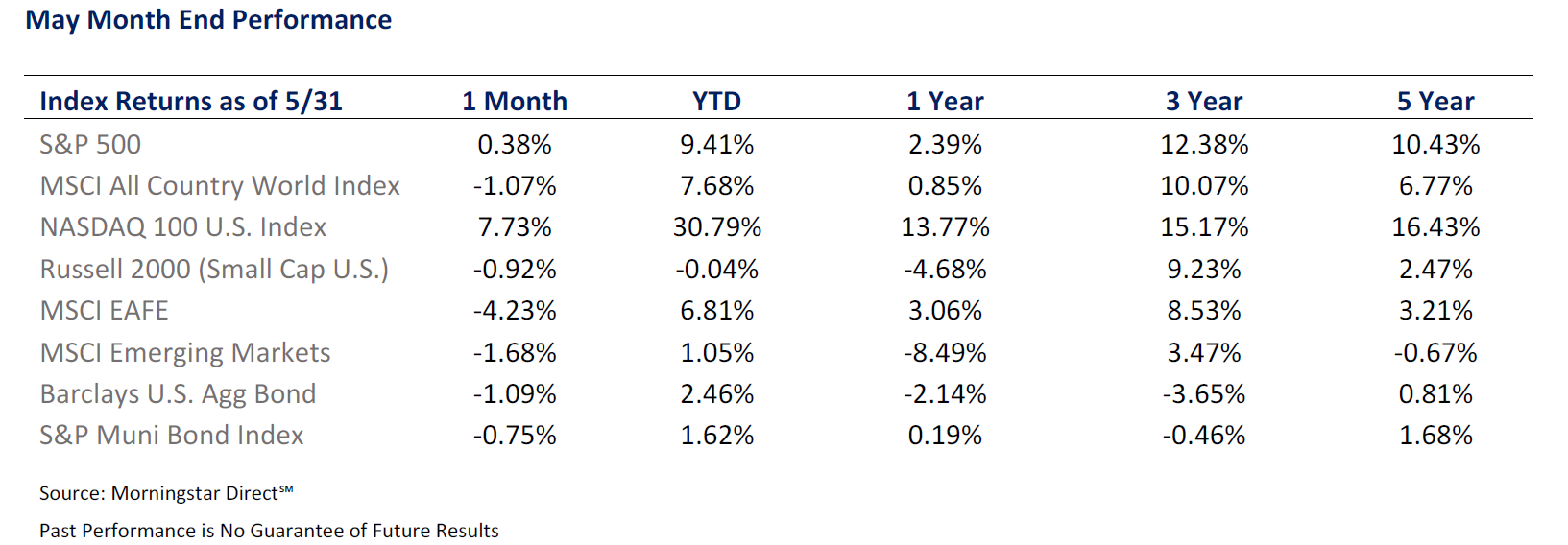 Ultimately, May's lack of convincing catalysts has not changed our previous outlook. While resolving the debt ceiling issue was positive, our concerns remain intact. Despite this year's rally, providing relief from last year's downturn, we remain cautious about upcoming challenges. Additionally, the market seems stuck in indecision, lacking clear direction. We are happy to stay balanced and diversified as we wait for Mr. Market to give us a little guidance.