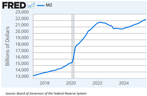 For the record, the Federal Reserve divides the nation’s money supply into two key measures: M1 and M2. M1 covers cash and checking deposits, the money that moves every day. M2, the broader gauge, includes M1 plus savings accounts and money markets, the funds that fuel broader financial activity.