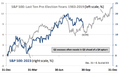 Chart of the Month – Yet another seasonal reminder. This one is even more specific, highlighting the typical pre-election-year market path. Interestingly, the summer months are even more painful than usual, only to finish the year with momentum. As investors, let's hope for the same.