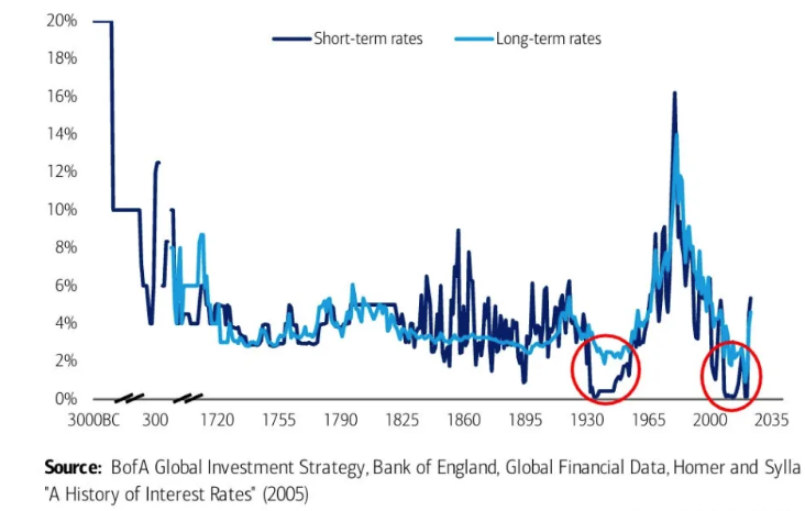 An October Bonus – Here is a fun one from Bank of America Global Investment Strategy. Unsurprisingly, this chart has gone somewhat “viral” given its incredibly long data set. I am unsure how they put this all together, but I thought it was worth a share. It is at least reassuring to know we still have lower interest rates than Julius Caesar!