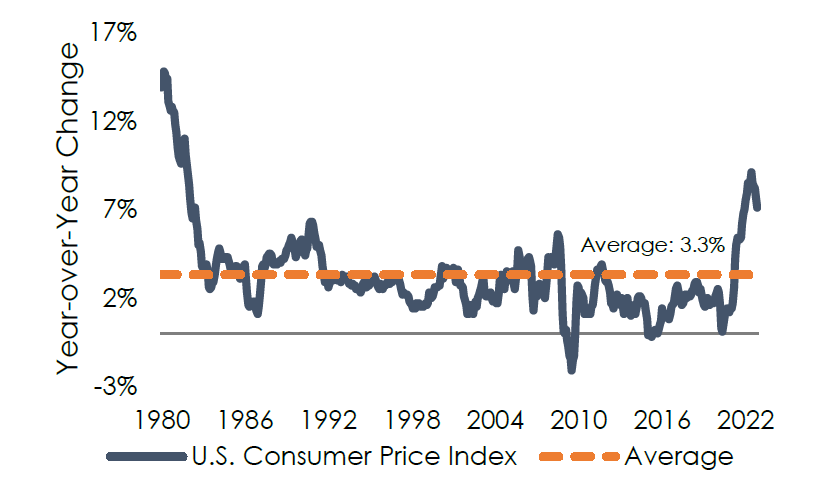 Although the past year generated negative returns across most asset classes, it did bring fixed income yields back into income-generating territory, which is a significant change from the past several years. A short time ago, one had to take significant risk to earn the same yield that U.S. Treasurys now offer. Corporate bonds and loans also now offer competitive returns relative to equities due to the rise in interest rates and credit spreads. The direction of interest rates remains difficult to predict, but with inflation still running at 7%, we do not expect to see short-term rates going back to zero anytime soon.